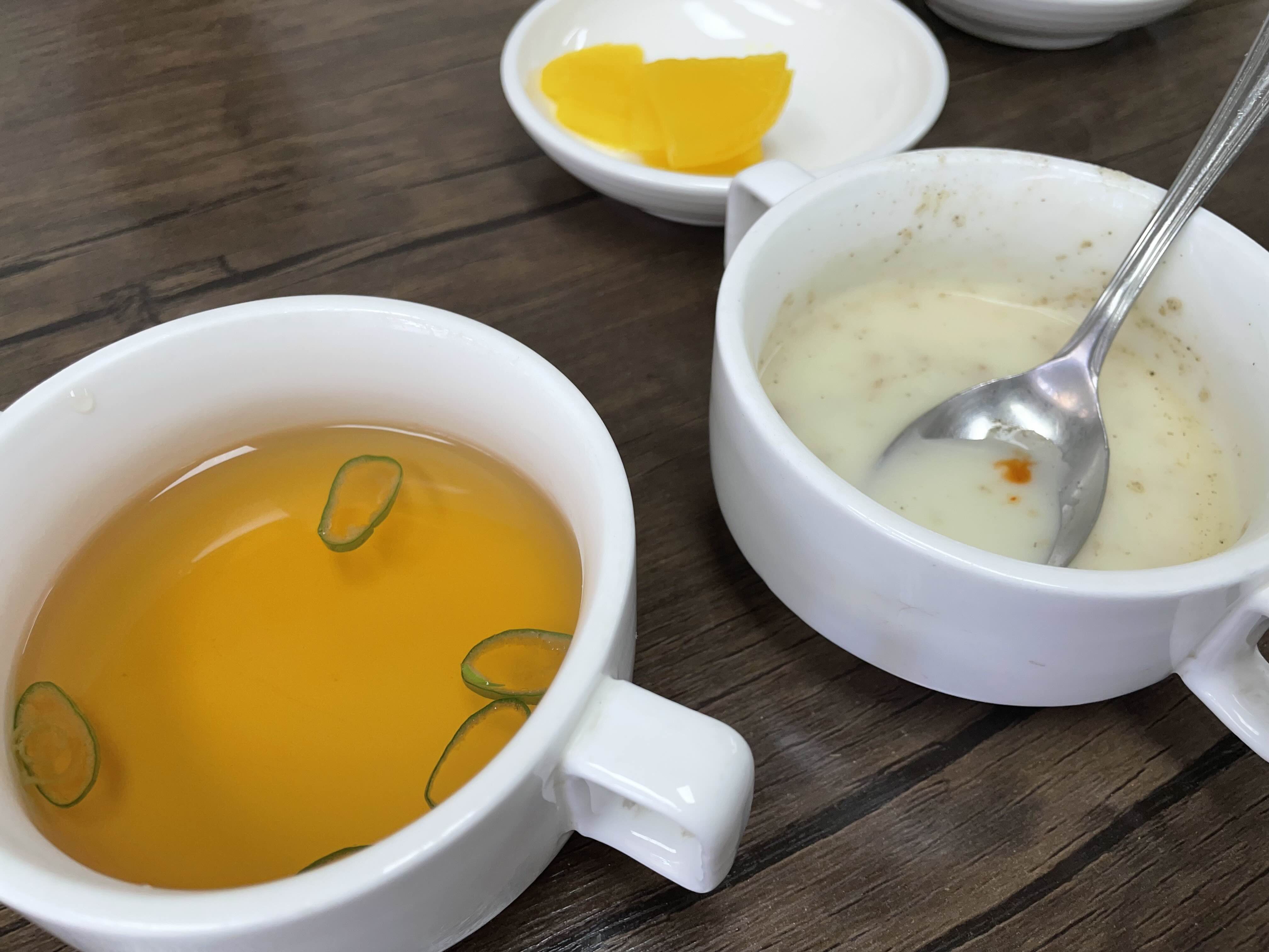경양식 돈까스가 나오기전 기대되는 스프 그리고 곁드림 국물~